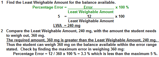 A student needs to weigh out 360 milligrams of Morphine Sulphate. The balance available has a sensitivity of 12 milligrams. If the measurement is to be accurate to 5 %, can the student weigh 360 milligrams on this balance? Answer Y for Yes , N for No.