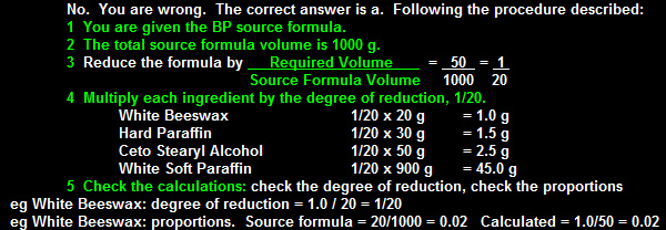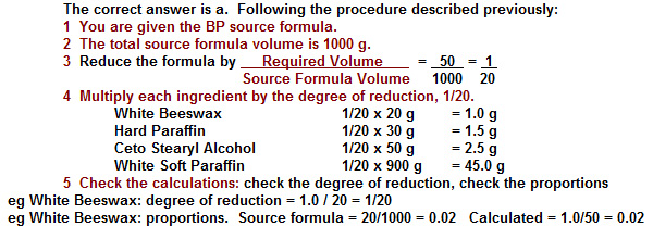 A 50 g of Paraffin Ointment BP 1988 is to be prepared and the preparer's first calculations are as below: