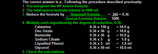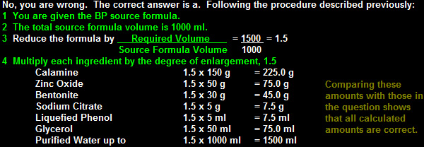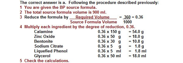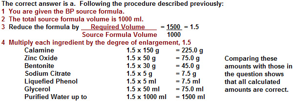 1.5 litres of Calamine Lotion BP 1988 are to be prepared and the first calculations are as below: