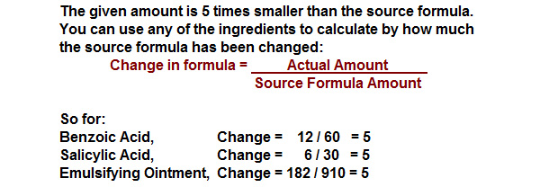 How much smaller is the following amount of Compound Benzoic Acid Ointment when compared with the source formula for Compound Benzoic Acid ointment BP 1988?