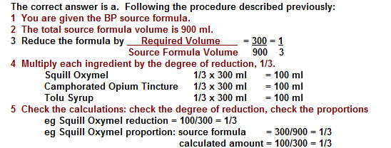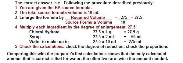 275 ml of Chloral Mixture BP 1988 is to be prepared and the preparer's first calculations are as below: