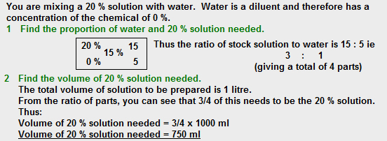A chemical comes as a stock solution containing 20% w/v of the chemical in water. How many millilitres of the solution do you need to prepare 1 litre of 15% solution?