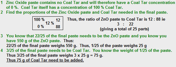 How many grams of Coal Tar should you add to 550g of a Zinc Oxide paste in order to prepare a paste containing 12% w/w Coal Tar?