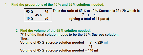 You need to prepare 220 ml of a solution containing 45% Sucrose. You have 10% and 65% Sucrose solution available. How many millilitres 65% Sucrose do you need?