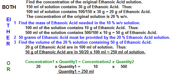 A solution contains 30 grams of Ethanoic Acid in every 150 ml of solution. How many millilitres of this solution are needed to prepare 500 ml of a 10 % w/v solution of Ethanoic Acid.