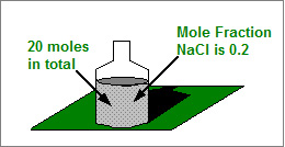 How many moles of Sodium Chloride are there in a system containing 20 moles of components if the mole fraction of Sodium Chloride is 0.2?
