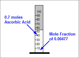 How many moles are there altogether in a solution if there are 0.7 moles of Ascorbic Acid and this is a mole fraction of 0.0047? Answer to 1 decimal place.
