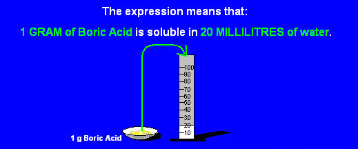 "Boric Acid is soluble in 20 parts of water"